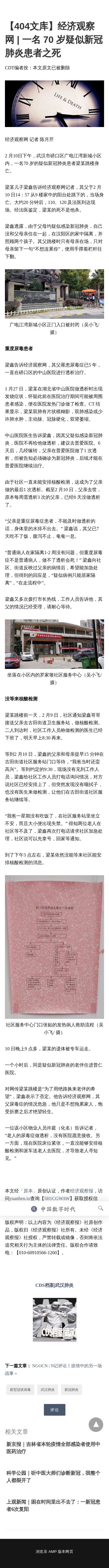 【404文库】经济观察网 | 一名 70 岁疑似新冠肺炎患者之死 - 中国数字时代
