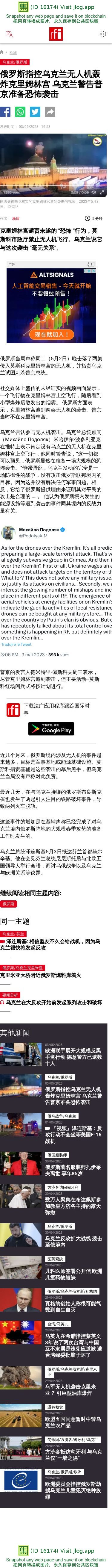 新闻原始地址:https://www.rfi.fr/cn/%E6%AC%A7%E6%B4%B2/20230503-%E4%BF%84%E7%BD%97%E6%96%AF%E6%8C%87%E6%8E%A7%E4%B9%8C%E5%85%8B%E5%85%B0%E6%97%A0%E4%BA%BA%E6%9C%BA%E8%BD%B0%E7%82%B8%E5%85%8B%E9%87%8C%E5%A7%86%E6%9E%97%E5%AE%AB-%E4%B9%8C%E5%85%8B%E5%85%B0%E8%AD%A6%E5%91%8A%E6%99%AE%E4%BA%AC%E5%87%86%E5%A4%87%E6%81%90%E6%80%96%E8%A2%AD%E5%87%BB
