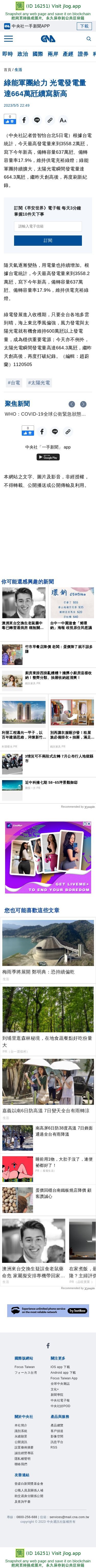 綠能軍團給力 光電發電量達664萬瓩續寫新高 | 生活 | 中央社 CNA