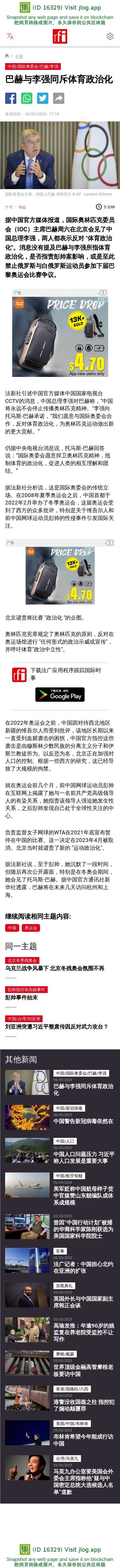 新闻原始地址:https://www.rfi.fr/cn/%E4%B8%AD%E5%9B%BD/20230506-%E5%B7%B4%E8%B5%AB%E4%B8%8E%E6%9D%8E%E5%BC%BA%E5%90%8C%E6%96%A5%E4%BD%93%E8%82%B2%E6%94%BF%E6%B2%BB%E5%8C%96
