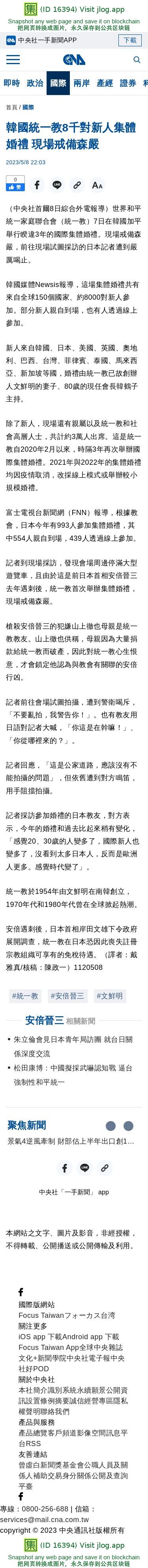 韓國統一教8千對新人集體婚禮 現場戒備森嚴 | 國際 | 中央社 CNA