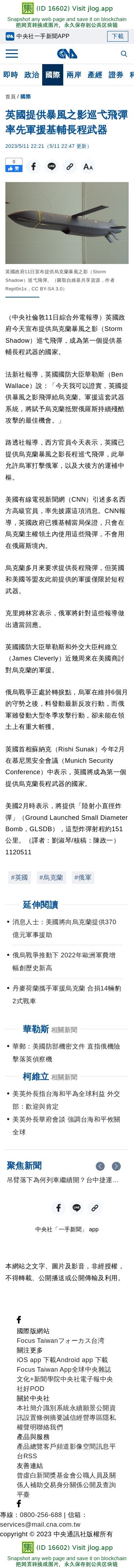 英國提供暴風之影巡弋飛彈 率先軍援基輔長程武器 | 國際 | 中央社 CNA