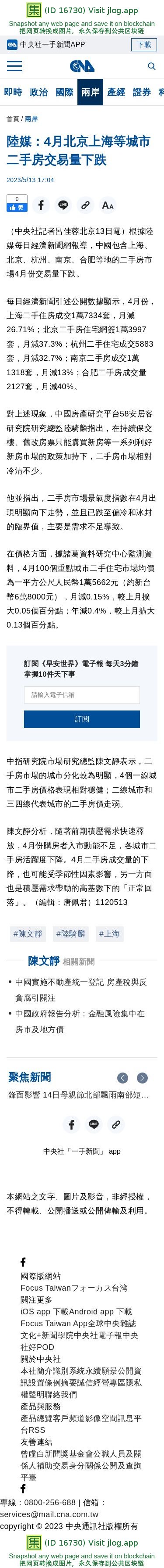 陸媒:4月北京上海等城市二手房交易量下跌 | 兩岸 | 中央社 CNA