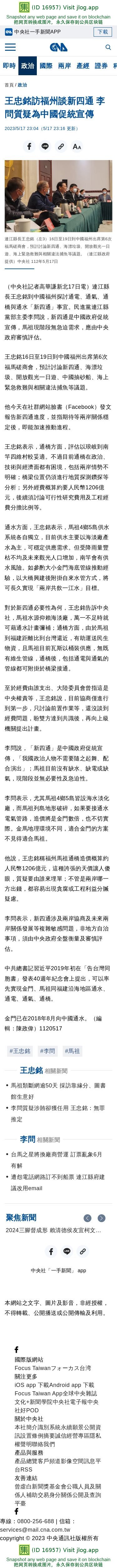 王忠銘訪福州談新四通 李問質疑為中國促統宣傳 | 政治 | 中央社 CNA