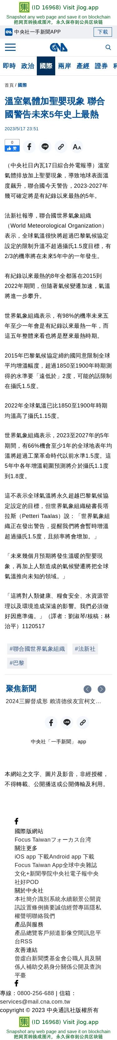 溫室氣體加聖嬰現象 聯合國警告未來5年史上最熱 | 國際 | 中央社 CNA