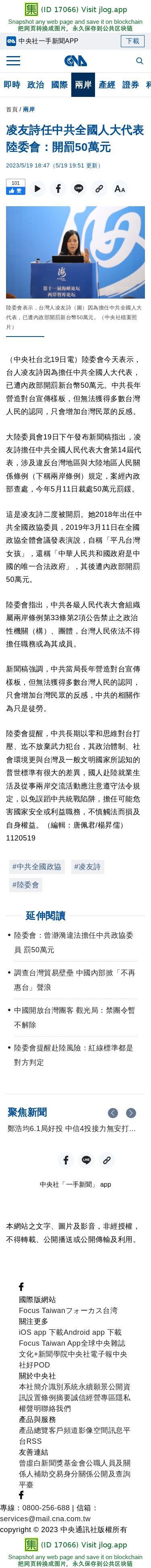 凌友詩任中共全國人大代表 陸委會:開罰50萬元 | 兩岸 | 中央社 CNA