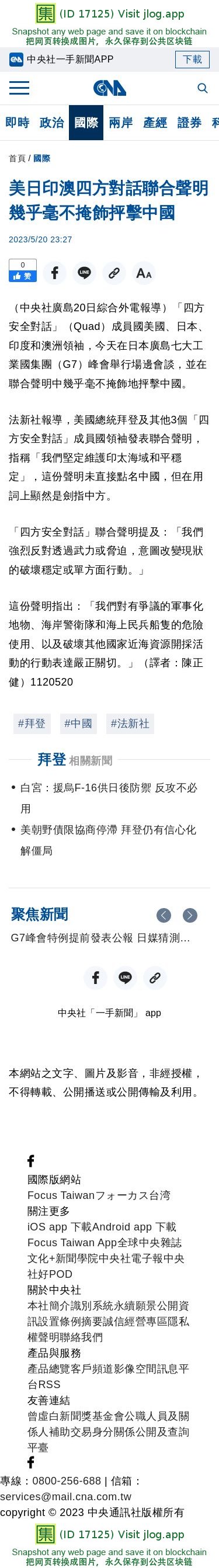 美日印澳四方對話聯合聲明 幾乎毫不掩飾抨擊中國 | 國際 | 中央社 CNA