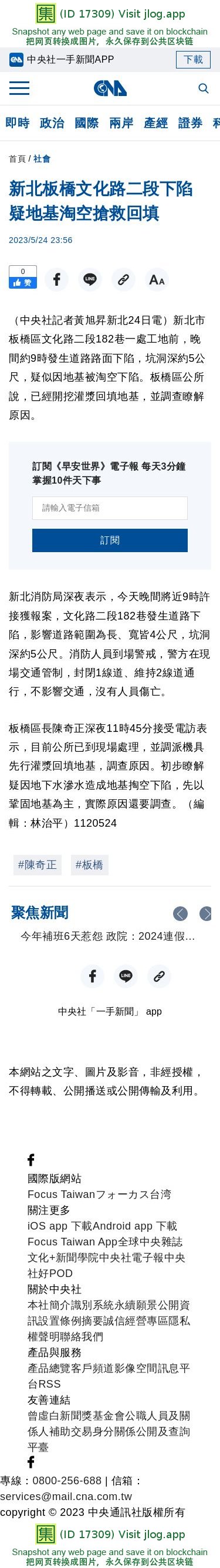 新北板橋文化路二段下陷 疑地基淘空搶救回填 | 社會 | 中央社 CNA