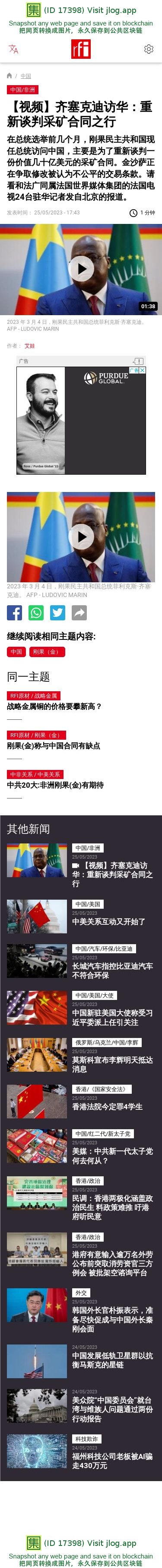 新闻原始地址:https://www.rfi.fr/cn/%E4%B8%AD%E5%9B%BD/20230525-%E8%A7%86%E9%A2%91-%E9%BD%90%E5%A1%9E%E5%85%8B%E8%BF%AA%E8%AE%BF%E5%8D%8E-%E9%87%8D%E6%96%B0%E8%B0%88%E5%88%A4%E9%87%87%E7%9F%BF%E5%90%88%E5%90%8C%E4%B9%8B%E8%A1%8C