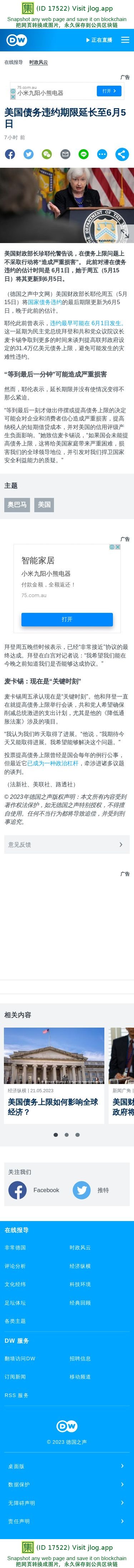 新闻原始地址:https://www.dw.com/zh/美国债务违约期限延长至6月5日/a-65752174