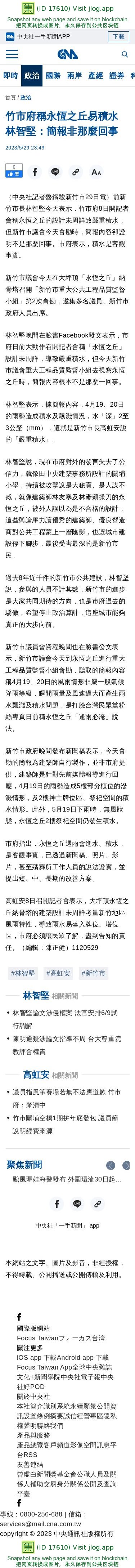 竹市府稱永恆之丘易積水 林智堅:簡報非那麼回事 | 政治 | 中央社 CNA