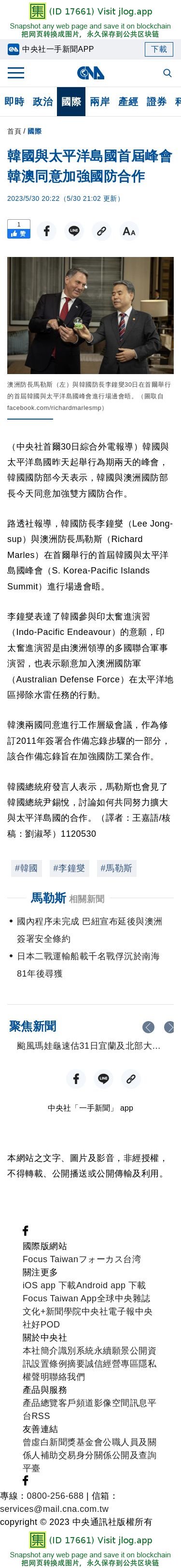 韓國與太平洋島國首屆峰會 韓澳同意加強國防合作 | 國際 | 中央社 CNA