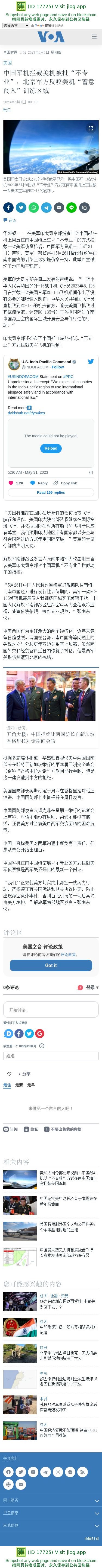 新闻原始地址:https://www.voachinese.com/a/china-military-says-us-reconnaissance-plane-deliberately-intruded-into-training-area-20230531/7117136.html