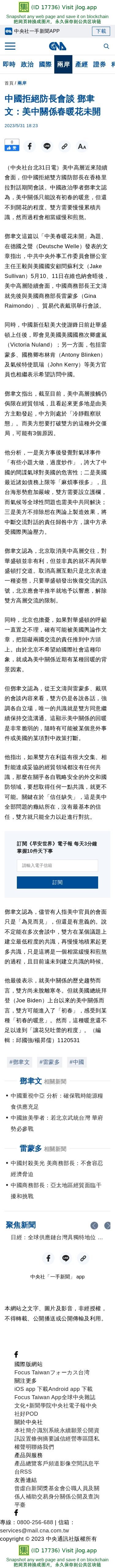 中國拒絕防長會談 鄧聿文:美中關係春暖花未開 | 兩岸 | 中央社 CNA