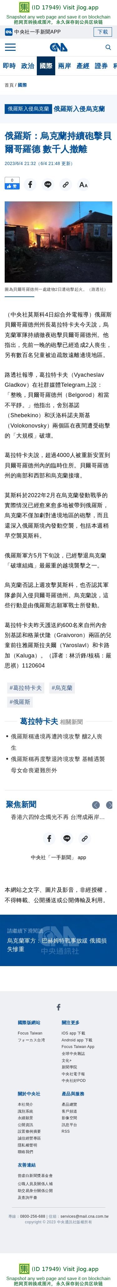 俄羅斯:烏克蘭持續砲擊貝爾哥羅德 數千人撤離 | 國際 | 中央社 CNA