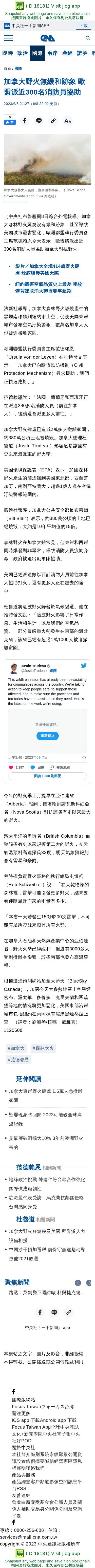 加拿大野火無緩和跡象 歐盟派近300名消防員協助 | 國際 | 中央社 CNA