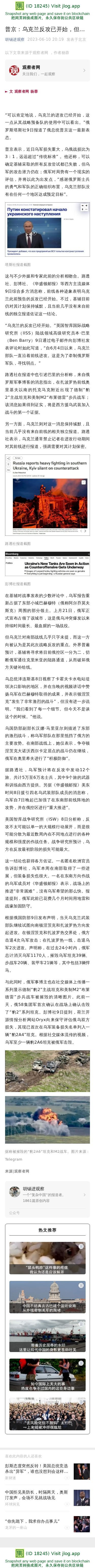 普京:乌克兰反攻已开始,但…