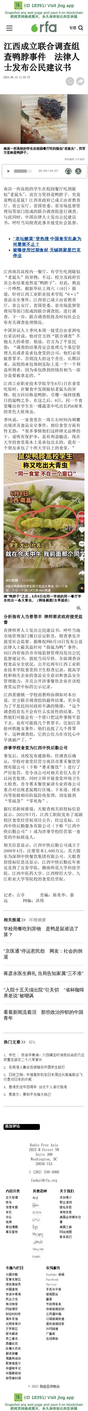 江西成立联合调查组查鸭脖事件 法律人士发布公民建议书 — 普通话主页