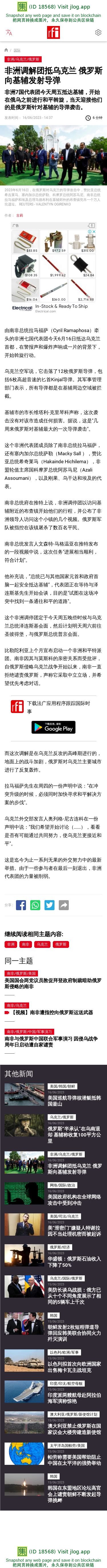 新闻原始地址:https://www.rfi.fr/cn/%E5%9B%BD%E9%99%85/20230616-%E9%9D%9E%E6%B4%B2%E8%B0%83%E8%A7%A3%E5%9B%A2%E6%8A%B5%E4%B9%8C%E5%85%8B%E5%85%B0-%E4%BF%84%E7%BD%97%E6%96%AF%E5%90%91%E5%9F%BA%E8%BE%85%E5%8F%91%E5%B0%84%E5%AF%BC%E5%BC%B9