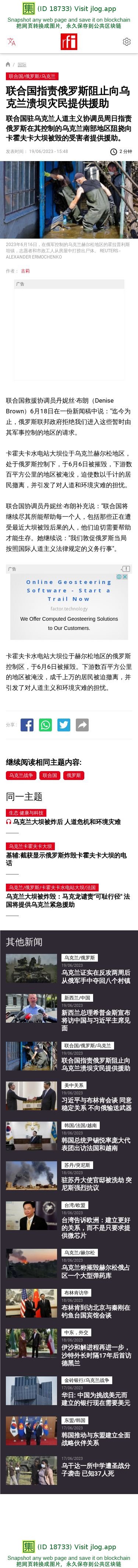 联合国指责俄罗斯阻止向乌克兰溃坝灾民提供援助