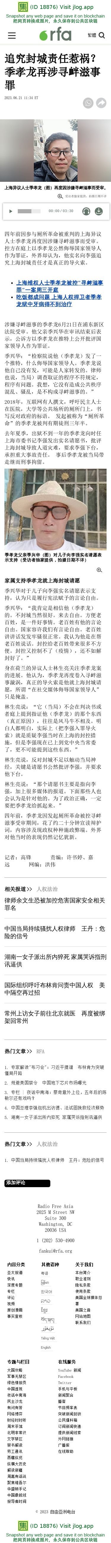追究封城责任惹祸?季孝龙再涉寻衅滋事罪 — 普通话主页