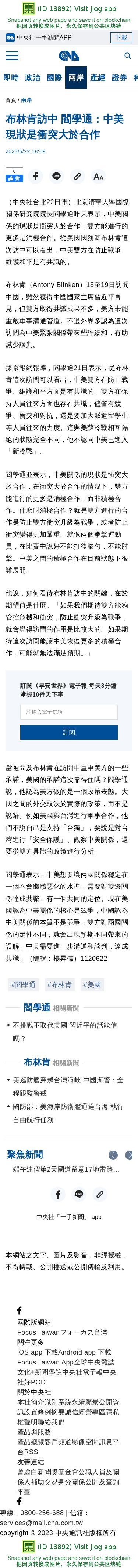 布林肯訪中 閻學通:中美現狀是衝突大於合作 | 兩岸 | 中央社 CNA
