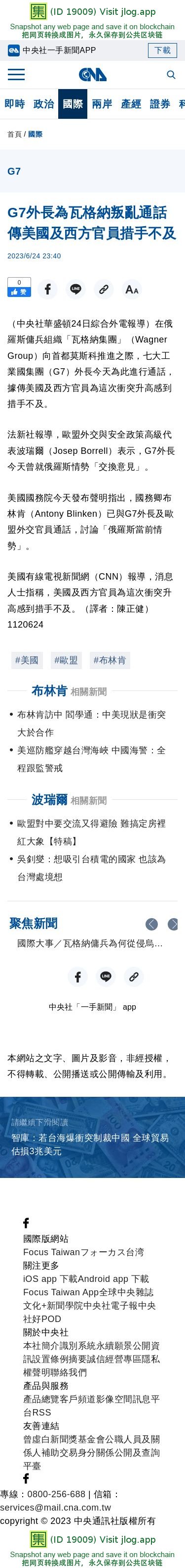 G7外長為瓦格納叛亂通話 傳美國及西方官員措手不及 | 國際 | 中央社 CNA