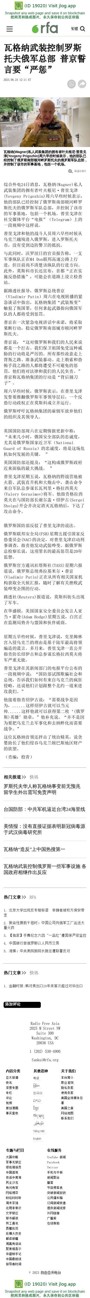 瓦格纳武装控制罗斯托夫俄军总部 普京誓言要“严惩” — 普通话主页