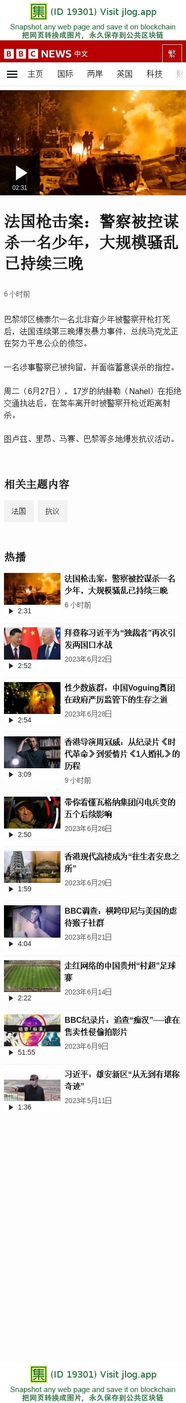 法国枪击案:警察被控谋杀一名少年,大规模骚乱已持续三晚 - BBC News 中文