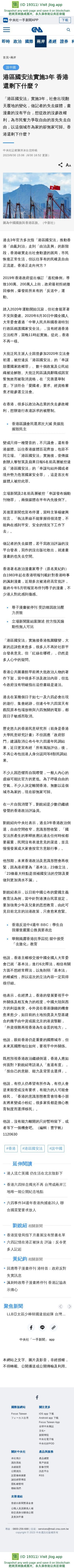 港區國安法實施3年 香港還剩下什麼? | 兩岸 | 中央社 CNA