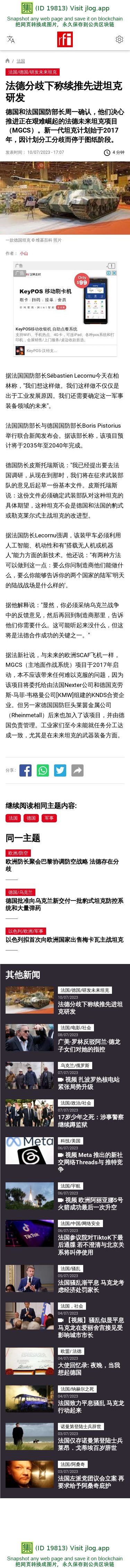 新闻原始地址:https://www.rfi.fr/cn/%E6%B3%95%E5%9B%BD/20230710-%E6%B3%95%E5%BE%B7%E5%88%86%E6%AD%A7%E4%B8%8B%E7%A7%B0%E7%BB%AD%E6%8E%A8%E5%85%88%E8%BF%9B%E5%9D%A6%E5%85%8B%E7%A0%94%E5%8F%91