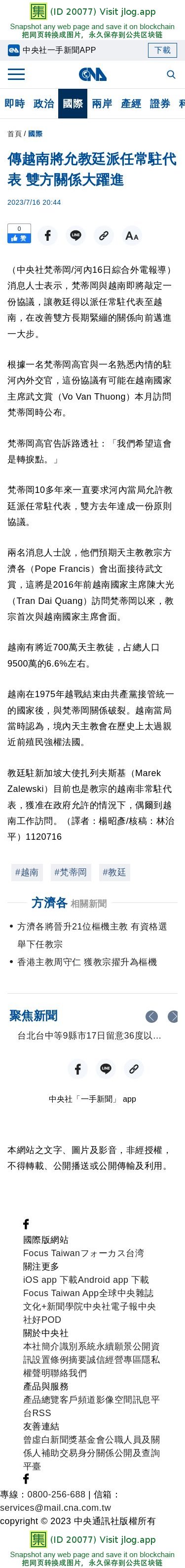 傳越南將允教廷派任常駐代表 雙方關係大躍進 | 國際 | 中央社 CNA