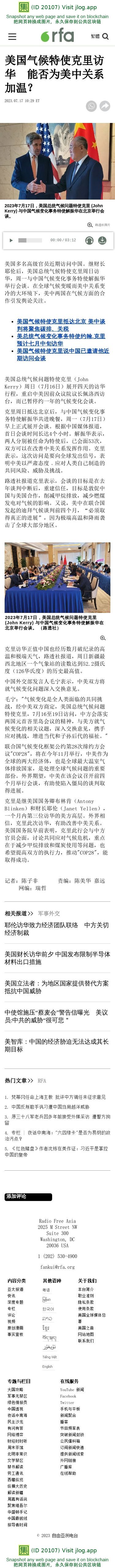 美国气候特使克里访华 能否为美中关系加温? — 普通话主页