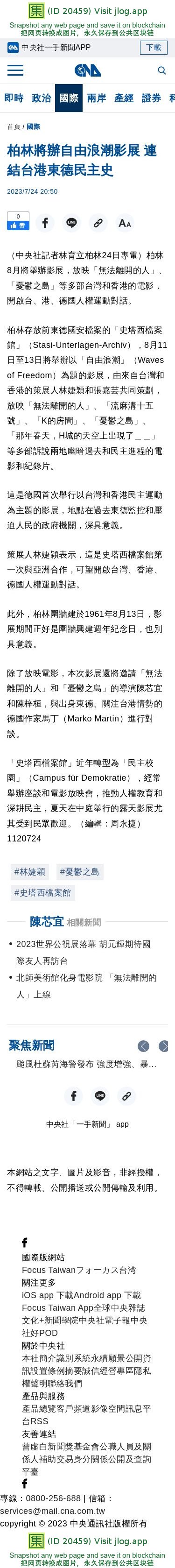 柏林將辦自由浪潮影展 連結台港東德民主史 | 國際 | 中央社 CNA