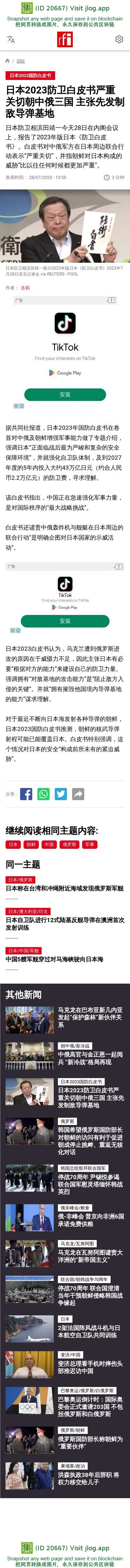 新闻原始地址:https://www.rfi.fr/cn/%E5%9B%BD%E9%99%85/20230728-%E6%97%A5%E6%9C%AC2023%E9%98%B2%E5%8D%AB%E7%99%BD%E7%9A%AE%E4%B9%A6%E4%B8%A5%E9%87%8D%E5%85%B3%E5%88%87%E6%9C%9D%E4%B8%AD%E4%BF%84%E4%B8%89%E5%9B%BD-%E4%B8%BB%E5%BC%A0%E5%85%88%E5%8F%91%E5%88%B6%E6%95%8C%E5%AF%BC%E5%BC%B9%E5%9F%BA%E5%9C%B0