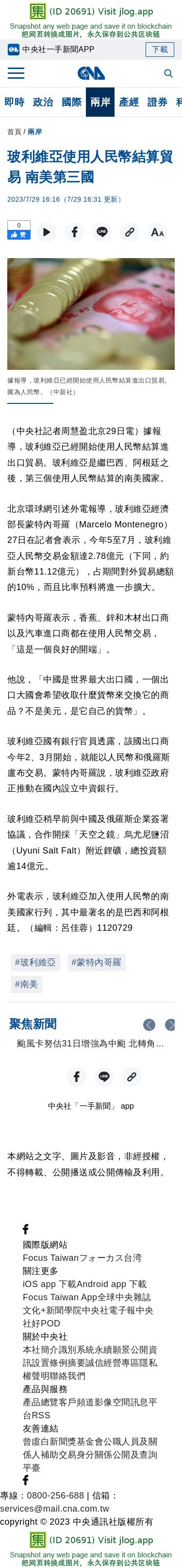 玻利維亞使用人民幣結算貿易 南美第三國 | 兩岸 | 中央社 CNA