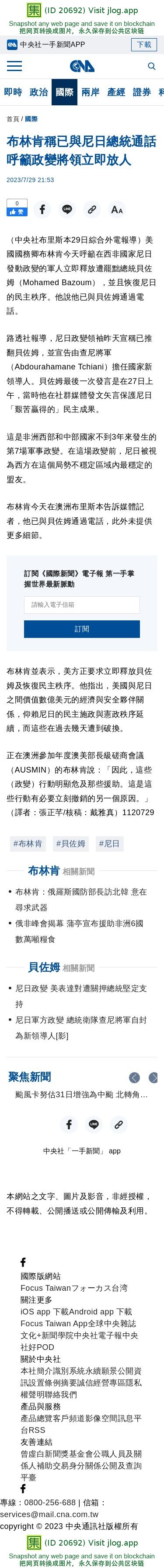 布林肯稱已與尼日總統通話 呼籲政變將領立即放人 | 國際 | 中央社 CNA