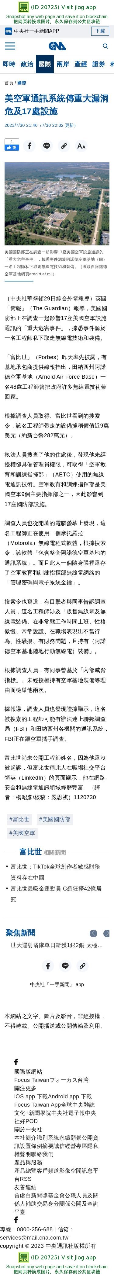 美空軍通訊系統傳重大漏洞 危及17處設施 | 國際 | 中央社 CNA