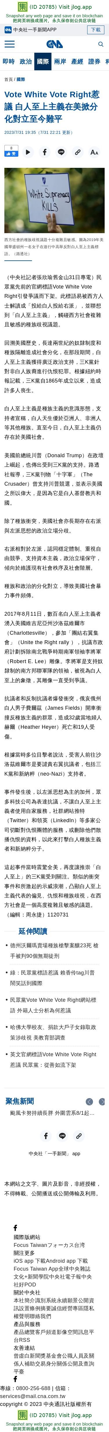 Vote White Vote Right惹議 白人至上主義在美掀分化對立至今難平 | 國際 | 中央社 CNA