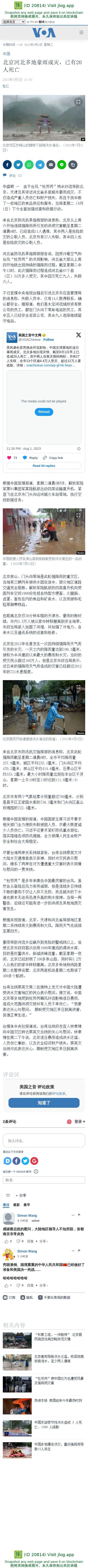 北京河北多地豪雨成灾,已有20人死亡