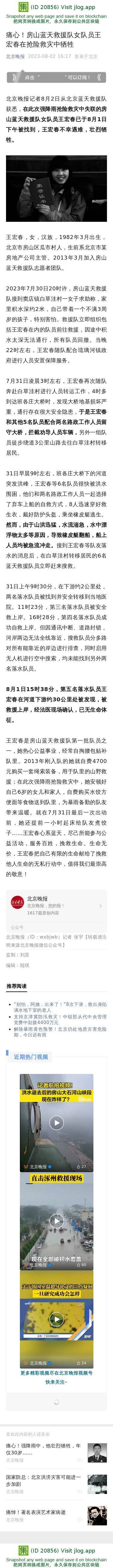 痛心!房山蓝天救援队女队员王宏春在抢险救灾中牺牲