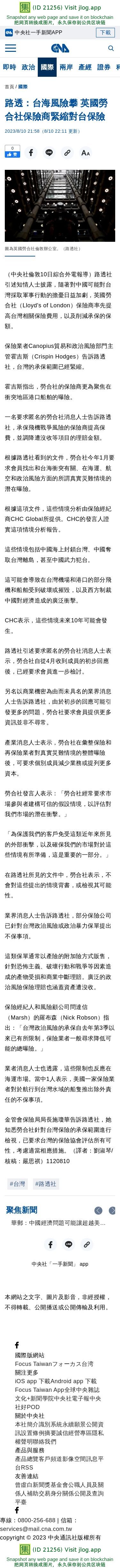 路透:台海風險攀 英國勞合社保險商緊縮對台保險 | 國際 | 中央社 CNA