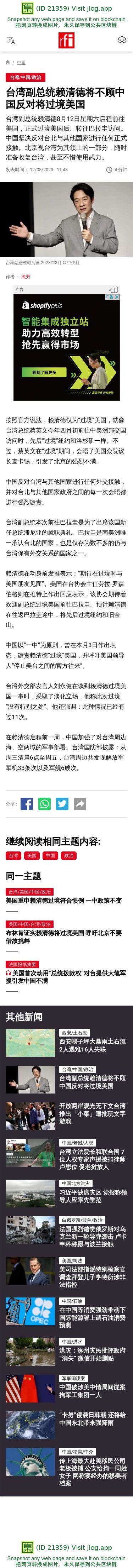 新闻原始地址:https://www.rfi.fr/cn/%E4%B8%AD%E5%9B%BD/20230812-%E5%8F%B0%E6%B9%BE%E5%89%AF%E6%80%BB%E7%BB%9F%E8%B5%96%E6%B8%85%E5%BE%B7%E5%B0%86%E4%B8%8D%E9%A1%BE%E4%B8%AD%E5%9B%BD%E5%8F%8D%E5%AF%B9%E5%B0%86%E8%BF%87%E5%A2%83%E7%BE%8E%E5%9B%BD