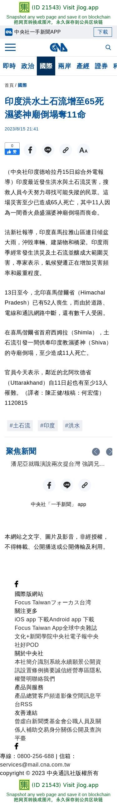 印度洪水土石流增至65死 濕婆神廟倒塌奪11命 | 國際 | 中央社 CNA