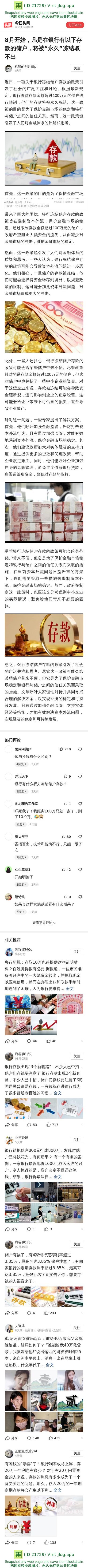 8月开始,凡是在银行有以下存款的储户,将被“永久”冻结取不出-今日头条