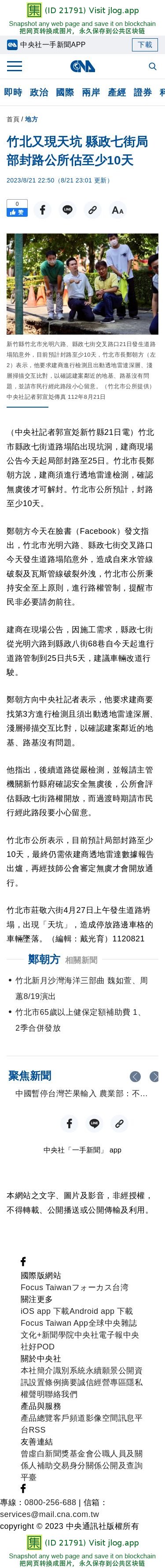 竹北又現天坑 縣政七街局部封路公所估至少10天 | 地方 | 中央社 CNA