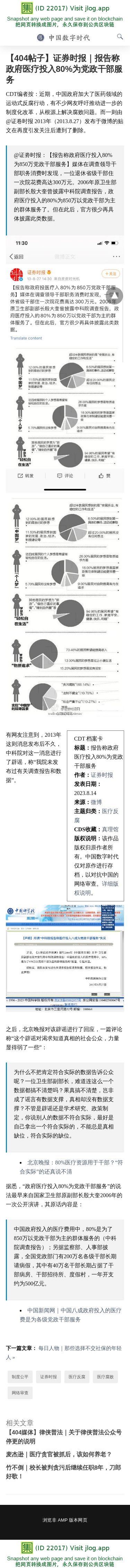 【404帖子】证券时报|报告称政府医疗投入80%为党政干部服务