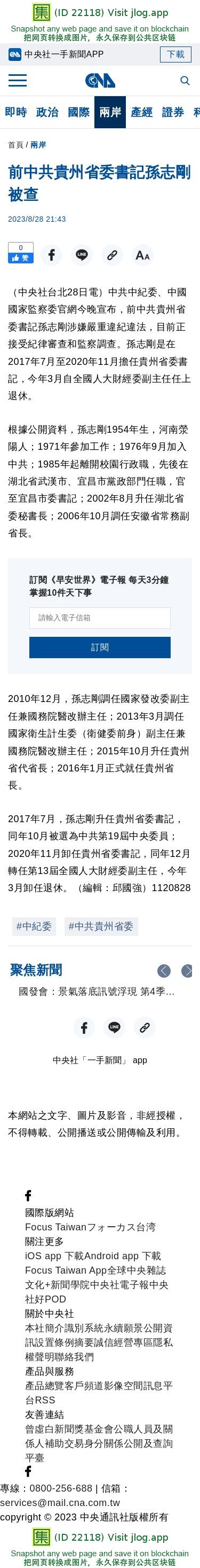 前中共貴州省委書記孫志剛被查 | 兩岸 | 中央社 CNA