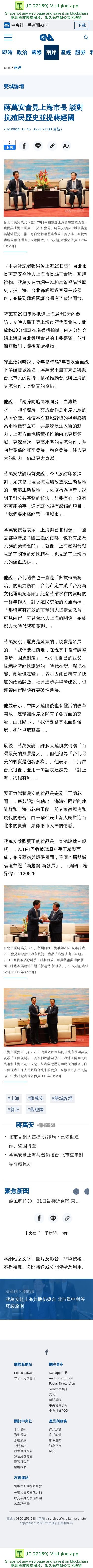 蔣萬安會見上海市長 談對抗殖民歷史並提蔣經國 | 兩岸 | 中央社 CNA