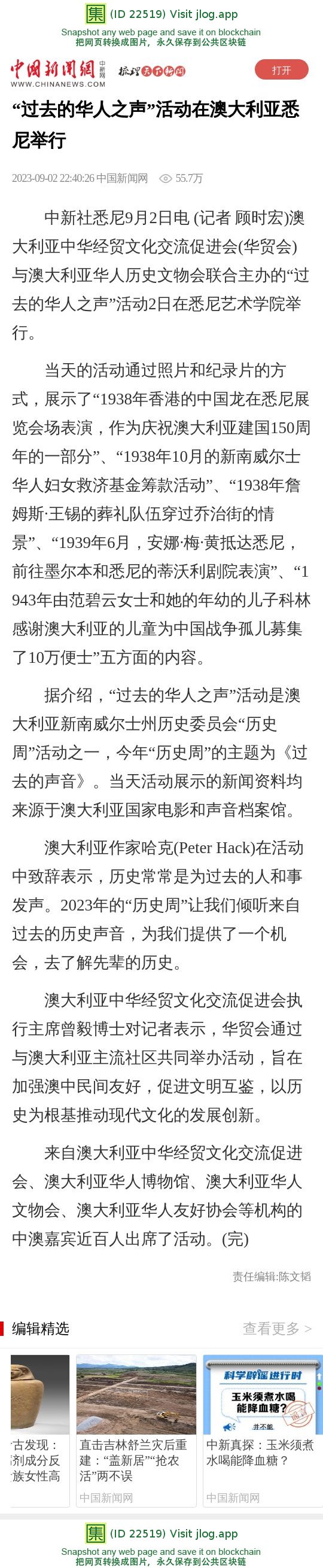 “过去的华人之声”活动在澳大利亚悉尼举行